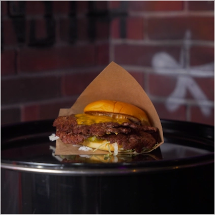 Friet + Drankje2 Patty (beef)Damonsta sausCheddar KaasAugurk Sla0