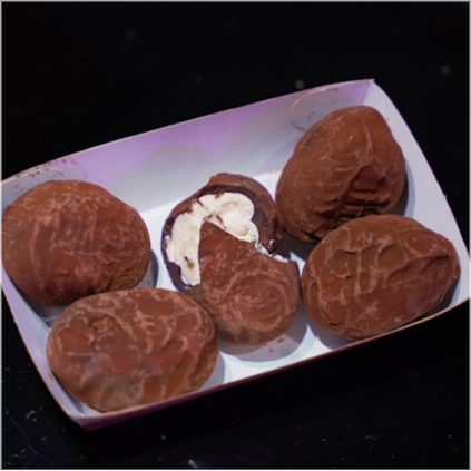 Knapperige chocoladetruffel met een zachte, romige creamflow van binnen0